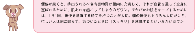 ワン!ポイントアドバイス 便秘はお肌の大敵なのだワン